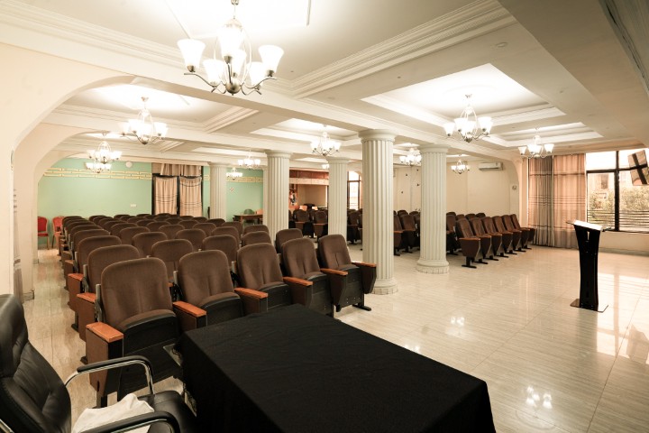 Découvrez l'élégance et le confort de la grande salle de conférence d'Elizabeth Hotel.